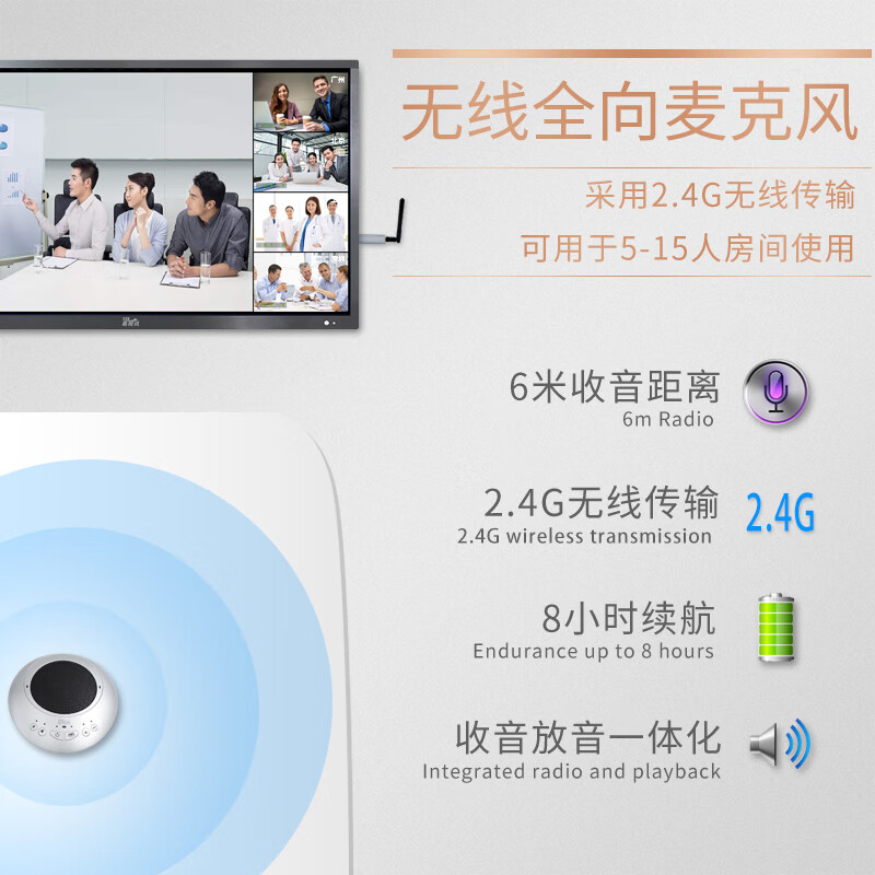 易视讯YSX-NT890S无线视频会议全向麦克风(适用20-50㎡视频会议室拾音6米)桌面扬声/全向麦克风带音响一体 自营